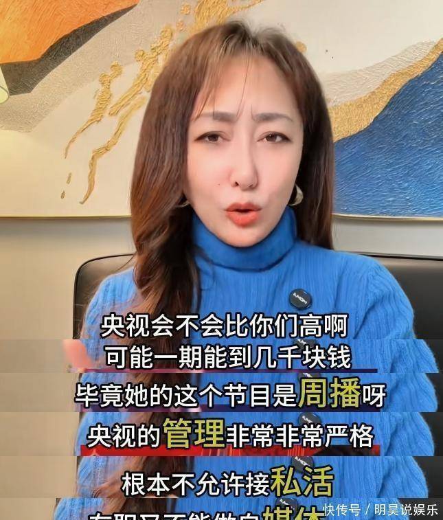 包括像是龙洋这样的知名主持人,她出席的春晚以及大型晚会酬劳会有几千,但是这样的活动不多基本是一年一次,大型活动一年也没有几次,并不稳定。这也不免让大家想到了曾经撒撒因为调整规则之后不再出现在综艺中,央视作为国家媒体,管控也不断地在升级,不允许在职期间去做其他的媒体,也不能接私活。